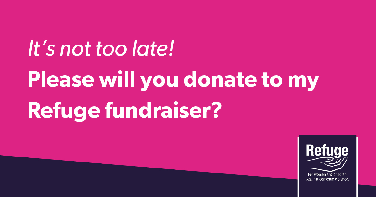 All funds donated to your fundraising page go to Refuge. The money raised from this event will help Refuge support thousands of survivors of domestic abuse on any given day. Domestic abuse should not be tolerated and your fundraising will help Refuge provide specialist services and campaign for change.