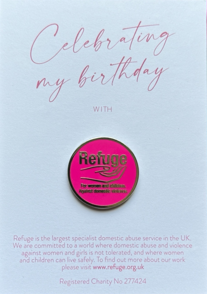 Fundraise for Refuge on your birthday and we will send you a beautiful birthday pin badge once you raise £100.